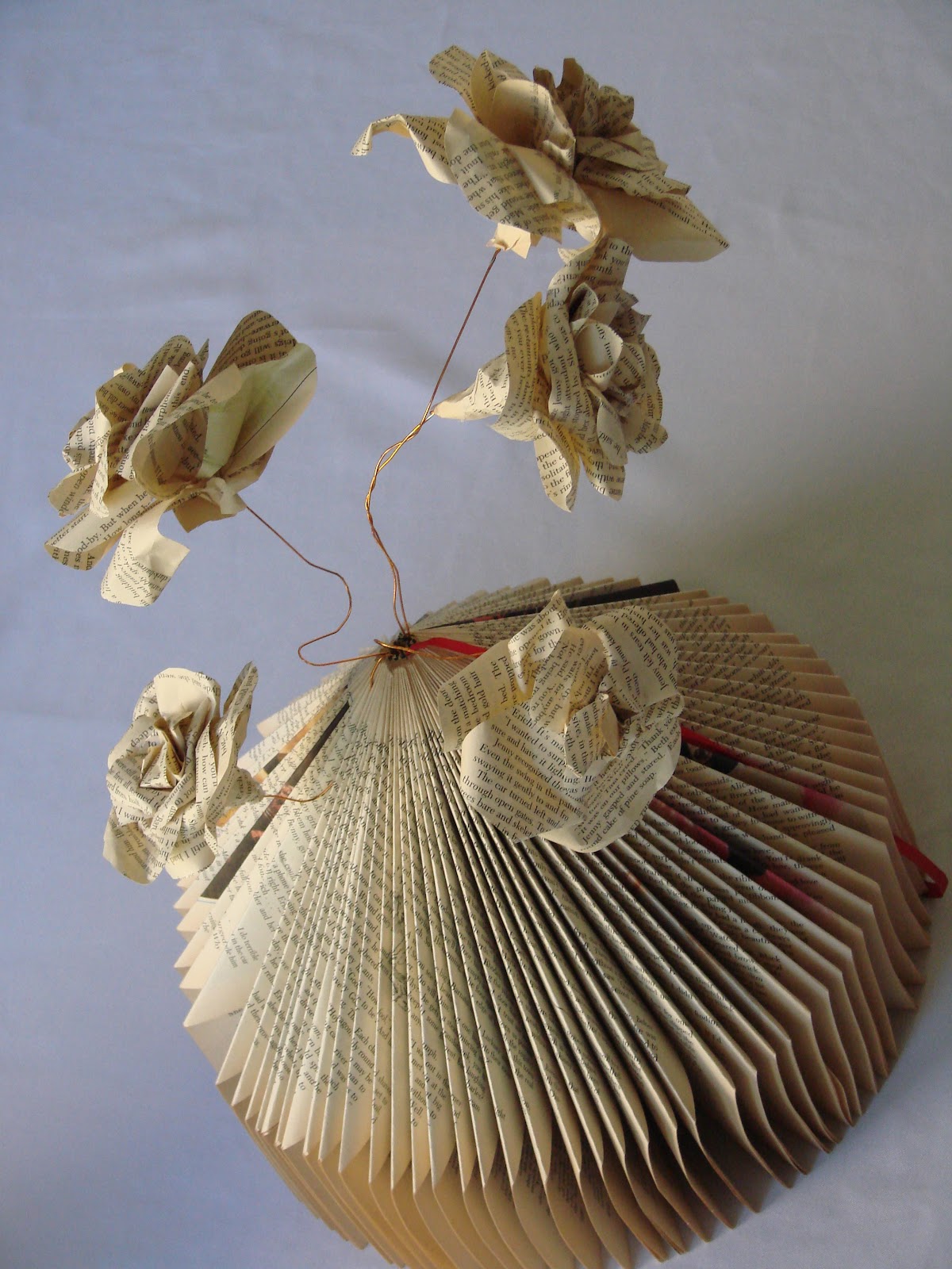 By now I think you have noticed that I like creating things out of old books, rather than reading them :-) so here is another idea for you for those old books lying around the house. It's a perfect center piece for your book-club dinner!